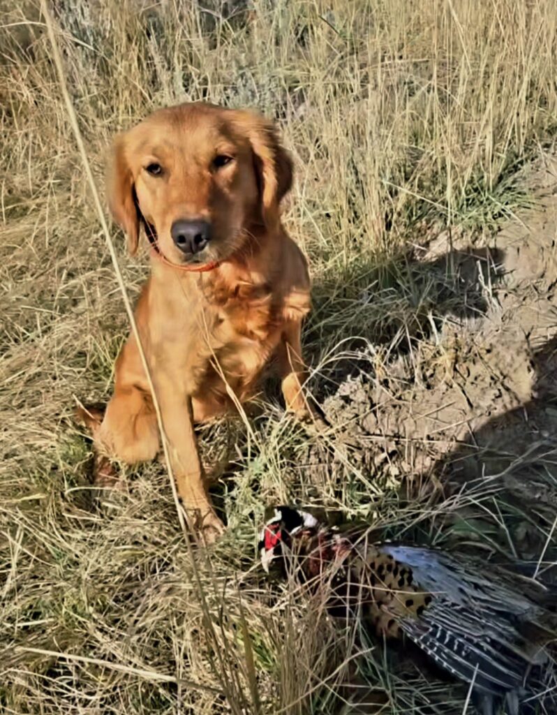 Jetta demonstrates a calm, cool demeanor in the home and with people but also has all desired qualities for field with good work ethics and prey drive. She is smart and athletic. She can fly! Dock diving is her jam! She is also queen of the frisbee game! She loves to hunt just as much and turns sagebrush hopping into her own personal sport while out chasing wild pheasant. Jetta comes from a long line of working golden retrievers. And she herself loves being a working a girl. Jetta is competing and pursuing several performance venues throughout 2026 including dock diving, fast cat, coursing ability, scent work, and obedience. And looking forward to hunting in the fall. We are excited to incorporate her lines in 2027 after gaining her health certifications.