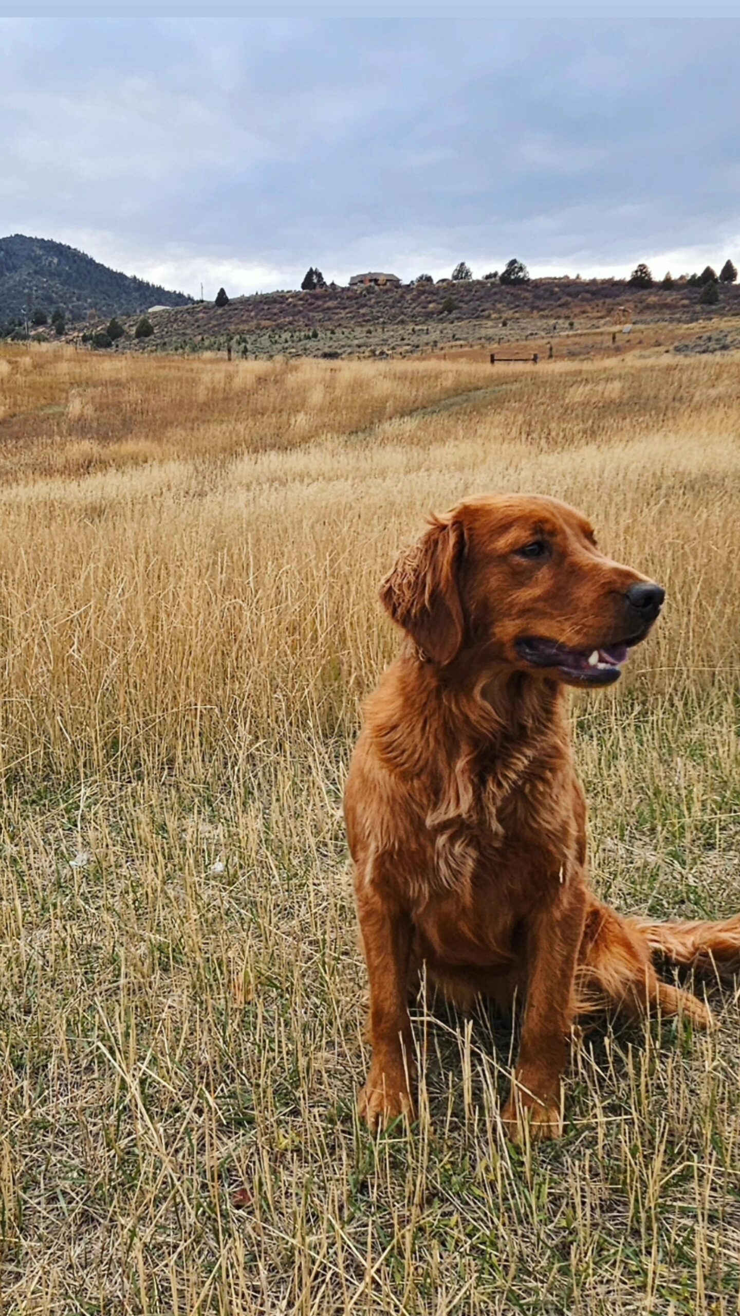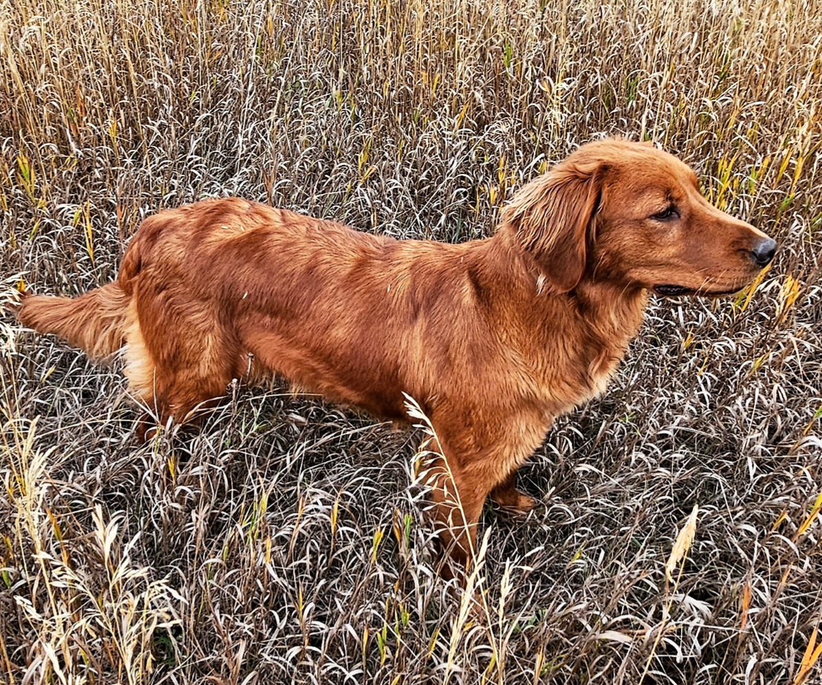 Sassy a dark red field bred Golden Retriever. She has a striking appearance and gentle demeanor. Sassy loves to retrieve & swim. She is a quiet, laid-back dog at home. She rarely barks, is just easy going, and joy to raise and train. She has strong retrieve and prey drive. And will go as long as you’d let her.